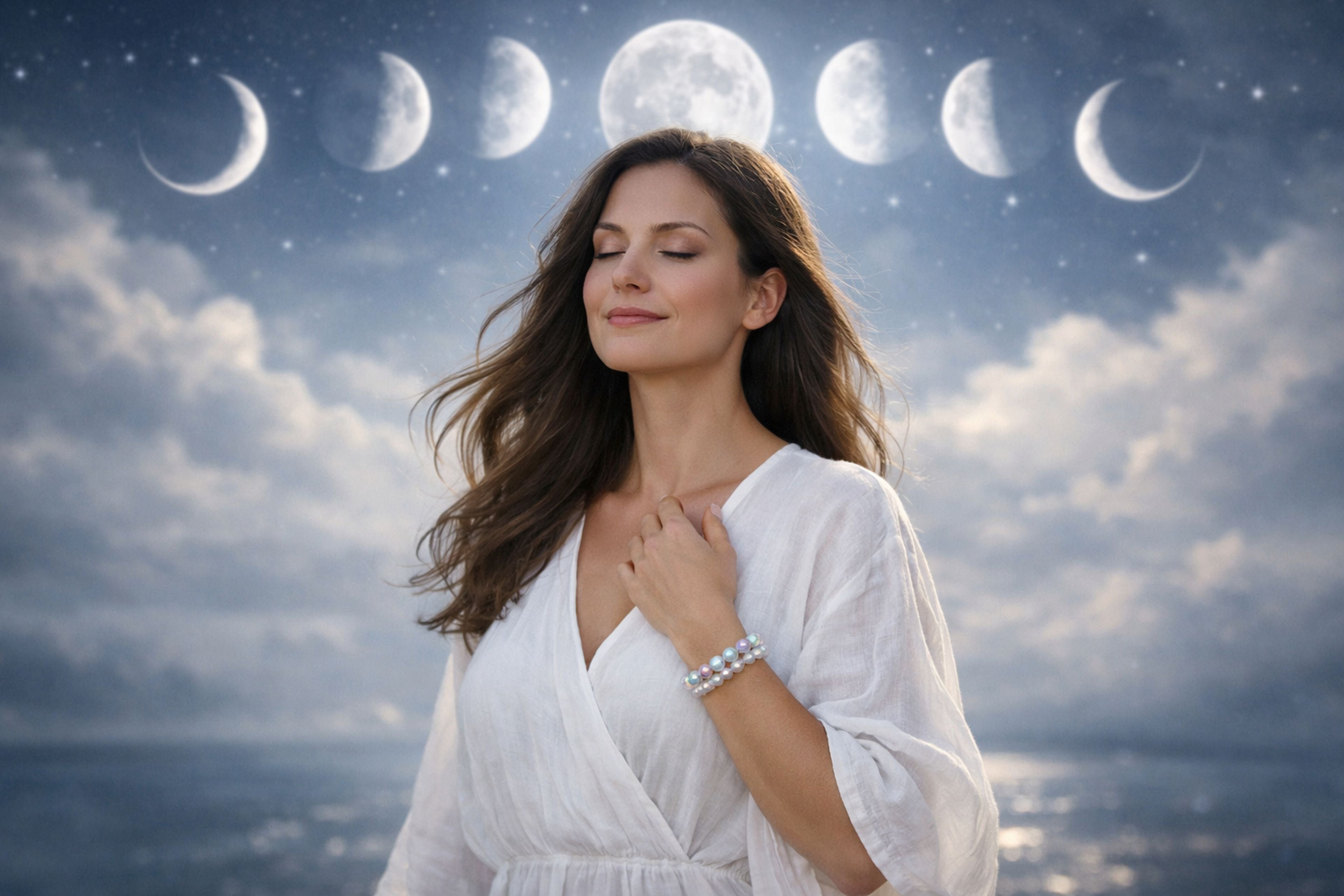 The Lunaia bracelet designed to support hormonal balance. Inspired by the sacred gem once worn by queens and priestesses for feminine vitality, it offers a natural way to restore harmony and radiant confidence. No hormones. No prescriptions. No harsh side effects.